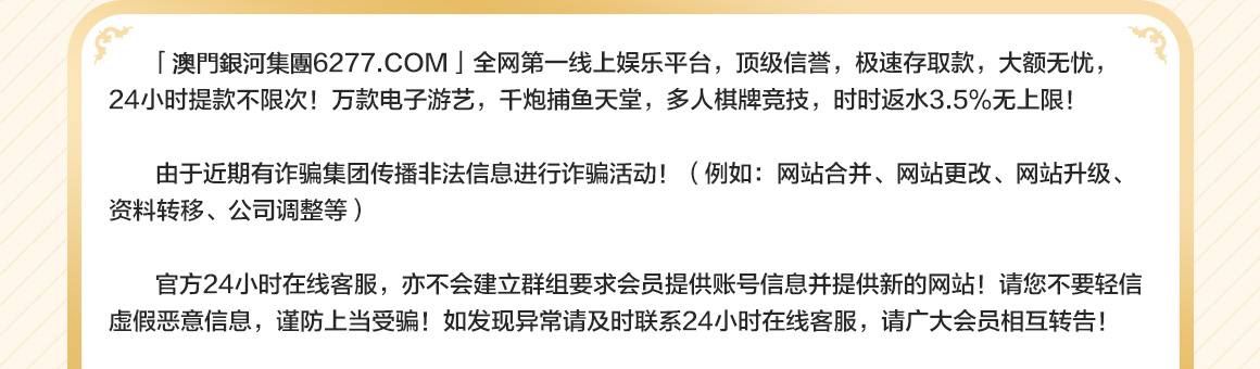 最新公告: ❤️欢迎光临澳门银河集团❤️全网最佳线上娱乐平台,电子/棋牌/捕鱼/视讯,天天免费旋转,百万奖池免费送,期待您的加入,我们将为您提供最真诚的服务,祝您游戏愉快,盈利多多!官网网址:(1963.com 1963.vip )  ༻༻༻༻༻✿VIP专属会员日重磅升级!✿༻༻༻༻༻尊贵的VIP会员您好! 为回馈您的长久支持,我们特别推出【VIP专属会员日】福利升级计划——每月3期专属盛宴,助您畅享无限惊喜与尊荣! 专属礼金 轻松领 活动期间,只需在统计区间内累计存款≥1元 + 投注≥1元+领奖日期,每月6号、16号、26号 奖励机制,存款越多,投注越多,礼金越高!最高奖励88888元!助您赢得尽兴! ⭐️ VIP晋级豪礼 荣耀加码 每月25日,VIP2级以上会员,只需活动期间保持登录在线,即可获得对应的晋级礼金!等级越高,福利越丰厚,见证您的每一步成长!机会不容错过,行动即享尊荣! 让我们一起开启每月的专属高光时刻,更多福利等您解锁!  【安心存款 无忧畅玩】重磅福利尊敬的各位贵宾,您好!为了给您提供更极致、更安心的存款体验,我司郑重推出全新存款保障计划!即日起,无论您通过任何渠道进行存款,如遇掉单情况,我们将100%赔付,并额外提供最高6277元补偿金平台支持多种存取通道,保障您的资金安全、省心无忧!  ༻༻⭐️官方推荐:钱能内置钱包⭐️༻༻钱能内置钱包存取款优势以及使用一.使用①手机端:点击我的→我的钱包→可选择钱包余额充值或转换充值至游戏账号②电脑端:点击会员中心→我的钱包→可选择钱包余额充值或转换充值至游戏账号二.优势①钱能钱包不需要额外下载APP, 不需要注册账号, 只要您是我司会员即可使用,充值秒到账。②解决了我司广大会员银行转账充值不了的难题,银行风控问题,以及交易流水...等问题。③支持微信,支付宝,网银买币以及卖币方式,加密交易,安全隐私不可追踪,无法冻结,币币交换,弹指之间充值无限额,资金安全可靠,无需承担任何手续费,成功率100%,首选充值方式!  【推荐充值方式公告】尊敬的贵宾您好:为规避免风控,强力推荐使用【USDT,钱能钱包】充值,可直接使用『微信/支付宝』买币卖币!大额存款有保障,安全、便捷、福利多,让您体验到零风险零掉单,稳妥妥上分不是梦!不仅如此还有很多充值优惠等着您参与!让您娱乐无阻碍玩得更畅快!更多优惠活动彩金尽在澳*门*银*河*娱乐城请持续关注【62770202.com】 祝您一路长虹~  【取款推荐使用】尊敬的贵宾您好:由于(风控机制)和(国家实行断卡行动)推荐绑定(USDT,钱能钱包)取款,全面支持:微信、支付宝、银行卡等方式交易、操作便捷、实时秒到,有效的避免银行卡频繁交易而造成的(限额、风控)等问题让您拥有更好的游戏体验。澳门银河集团最新官方域名 www.62770012.com  ⭐️尊敬的各位贵宾,您好!若您无法访问在线客服,请您使用会员中心 →【在线留言】或者发送至邮箱:【 amyhkf6277@gmail.com】 留下您的问题,谢谢~  ⭐️【每日返水公告】⭐️美东时间01月23日返水已派送完毕,请各位贵宾注意查收~⭐️【优惠彩金更新通知】⭐️美东时间01月23日活动已更新,请您点击【会员中心】→【优惠中心/活动红包】即可领取~感谢您一路的支持与陪伴!更多精彩敬请关注【https://62770017.com/】  ❤️使用卡密充值时❤️务必注意!1.打开对应APP购买对应金额电子卡密。2.购买后,点击查看订单。3.选择对应订单,点击右下角查看卡密-复制。4.长按粘贴卡密,提交卡密,切无多次提交,等待自动上分。5.卡密只能使用一次 (勿重复使用)勿绑定)只上分有效卡密 (已绑定 已使用)无法上分!!!  ⭐️【官网通知拒绝欺诈!杜绝假冒!请认准唯一官网】 ⭐️请认准官网热线:【400-6297-999】请认准官网邮箱:【amyhkf6277@gmail.com】请认准官网网址:【www.1963.com 】【www.11.am 】【www.6277.com】最新网址:【https://00336277.com/】【https://00446277.com/】由于近期有不法分子通过网络劫持手段,传播非法信息进行诈骗活动!(例如:网址更改,网站升级,资料转移,公司调整,私下转账等)要求您提供会员账号的登陆密码, 取款密码信息,私下转账,均为骗子!切记!「澳门银河集团1963.com,6277.com」没有与任何平台合并,更不会以任何理由要求会员提供任何密码、向会员发送收款信息索取钱财以及不会主动以群聊或私聊等任何形式告知会员优惠活动!请广大会员相互转告,以免上当受骗!有任何疑问,请及时联系我们7X24小时在线客服为您解答!  ⭐️⭐️【中奖神秘喜讯通知】⭐️⭐️ 【my****21】获得了我们公司随机派发神秘彩金,【5279元】已派送至银行卡号; 【jw*****95】获得了我们公司随机派发神秘彩金,【7982元】已派送至银行卡号;【hk*****67】获得了我们公司随机派发神秘彩金,【9841元】已派送至会员账号; 【bs*****34】 美东时间 2026年1月23日 在PG平台→【水上泰神奇】,累计中奖¥151,537.00元!【tg****00】 美东时间 2026年1月23日 在MG平台→【新水浒传】,累计中奖¥ 96 ,828.00 元! 幸运大奖人人有,也许下一个幸运儿就是您呦!赶快登陆游戏吧!最新网址:www.6277.com  ⭐️【每日百亿神秘彩金您领取了吗?】⭐️会员保持天天在线;我们将不定时抽取幸运星;赠送神秘彩金!有登录、充值、投注、单量、取款、钱包等会员获得几率更大哦!请您保持天天在线并留意信通知哦!如果您已经参与领取了彩金请赶紧转告您身边有需要的朋友。共享这