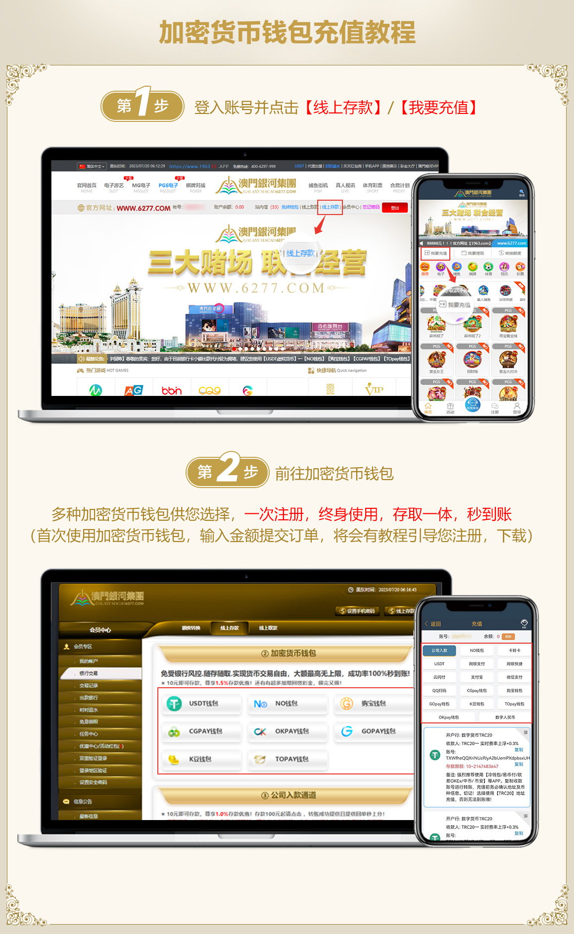 澳門銀河集團WWW.6277.COM公司入款最低10元起存款,回馈3.0%存款优惠;线上支付最低存款10元起可存款,USDT数字货币 、 钱能钱包 、购宝钱包、NOPAY钱包、K豆钱包、OKPAY钱包、GOPAY钱包、 TOPAY钱包等线上支付,存款秒到账、可享0.5%存款优惠,次次存、次次送、无上限,即日起会员最低10元即可申请提款、无限次数、无需任何手续费、轻松自由存取款。